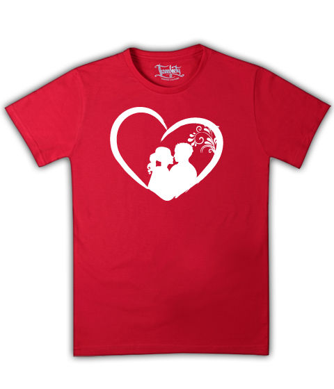 Прикольные футболки: влюбленные в сердце на красной