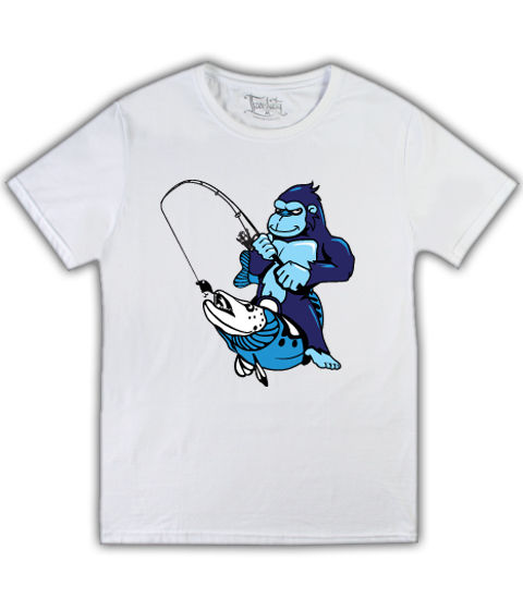 Футболка Горила-рыбак на белой
