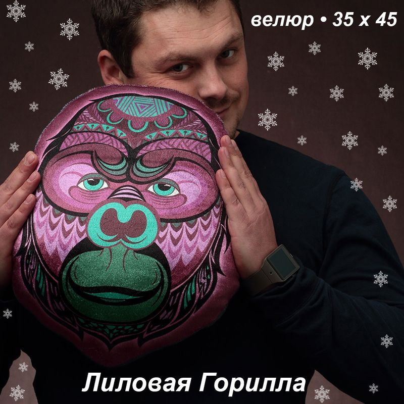 Купить подушка лиловая горилла велюр 35х45 бакенбарды в Днепре, доставка по Украине