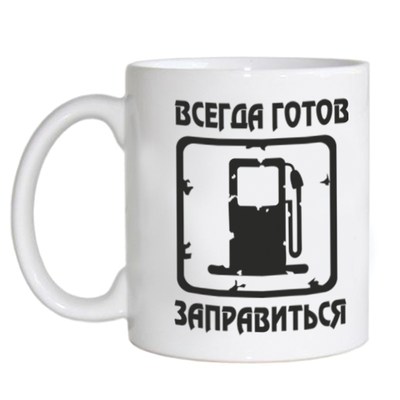 В нашем интернет-магазине Вы можете купить чашку Кружка всегда готов заправиться по доступной цене. Отличительной чертой нашей продукции является качество и эксклюзивность.Кружка Кружка всегда готов заправиться может быть доставлена в любой регион Украины. Мы работаем по всей стране и гарантируем успешную доставку в любую точку страны! Если же Вы решили выделиться из серой массы, то предлагаем Вам заказать оригинальную футболку с принтом, которую наши дизайнеры разработают персонально под Ваши вкусы и предпочтения!