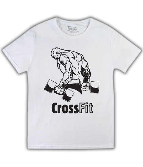 Футболка CrossFit с гантелями на белой