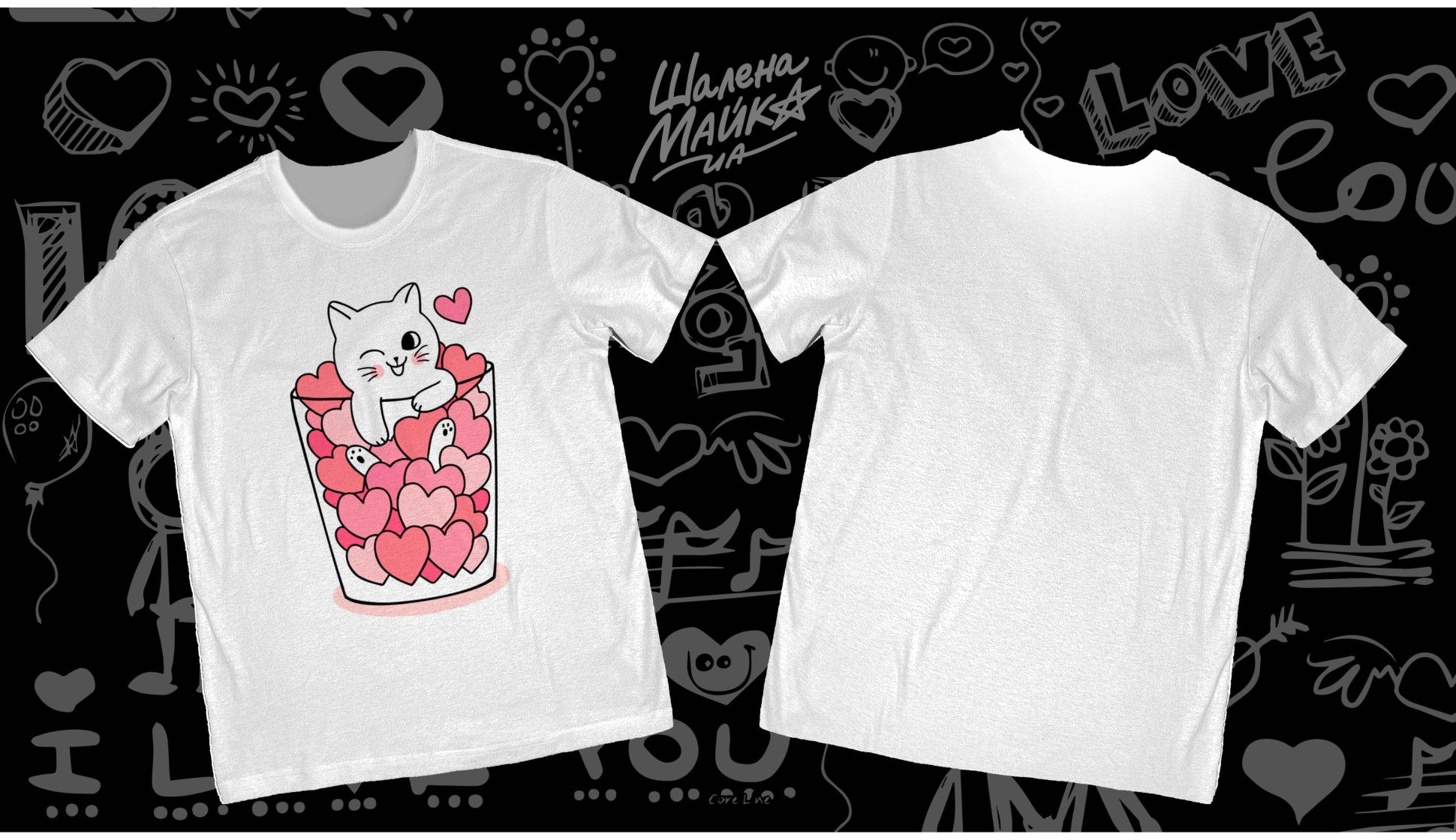 Купить футболку котик в стакане с сердечками в Днепре, доставка по Украине