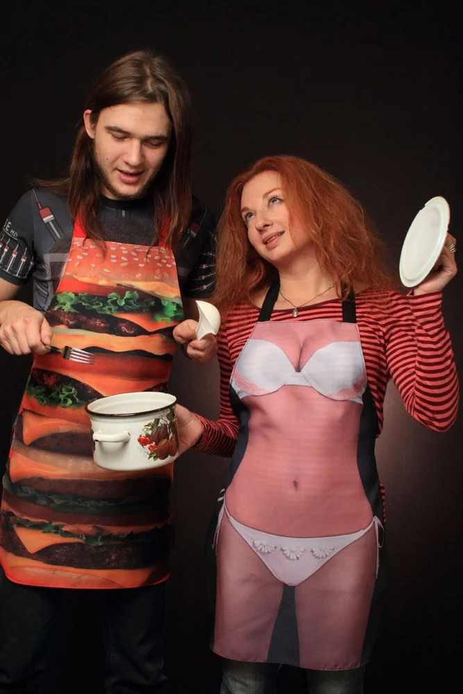 Если фартуки сшить с принтом на заказ для всей семьи, то в таком виде можно участвовать в различных кулинарных конкурсах, всем вместе готовить дома в выходные.
