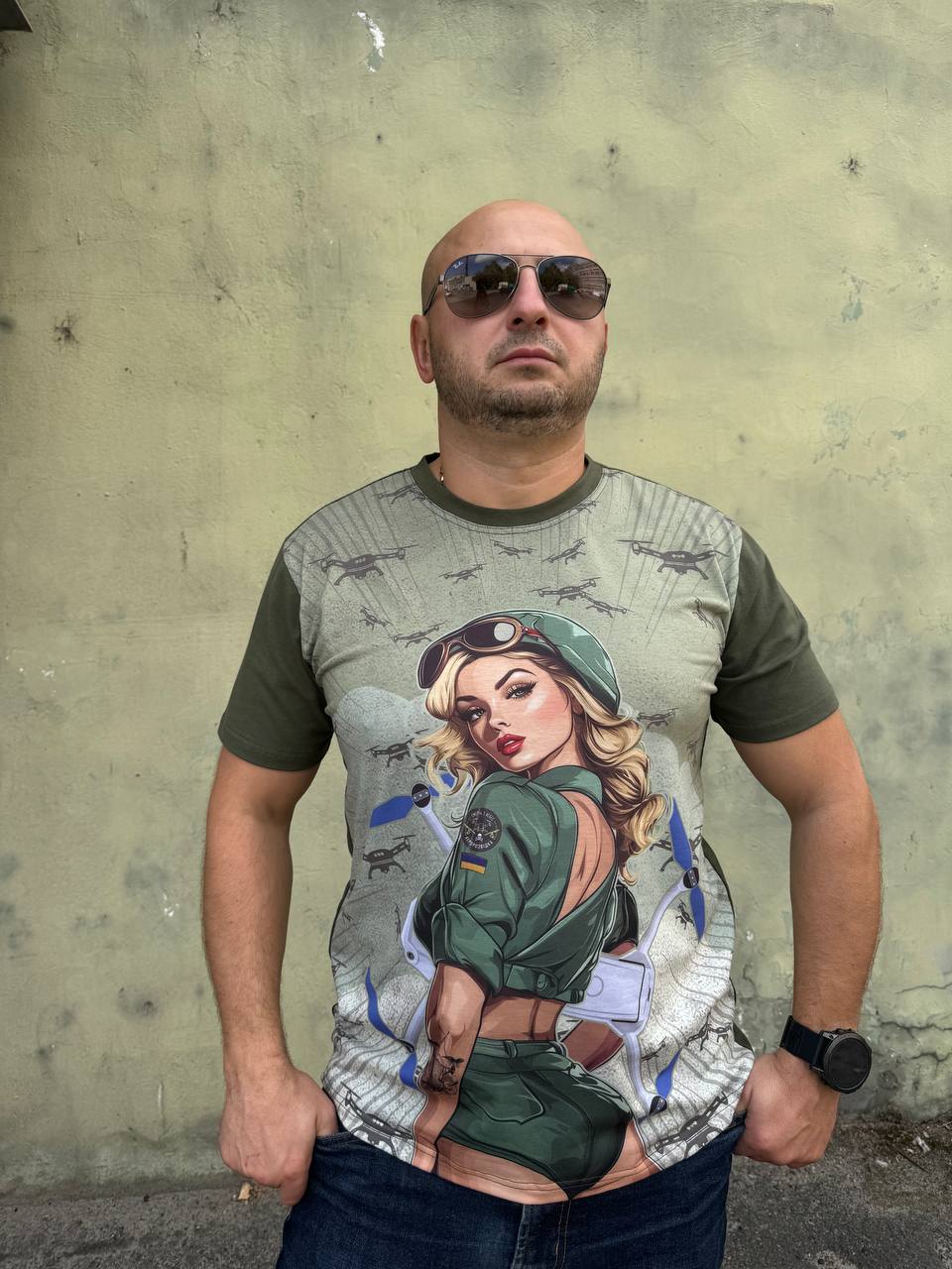 Купить футболку футболка пін-ап дівчина з дроном в Днепре, доставка по Украине
