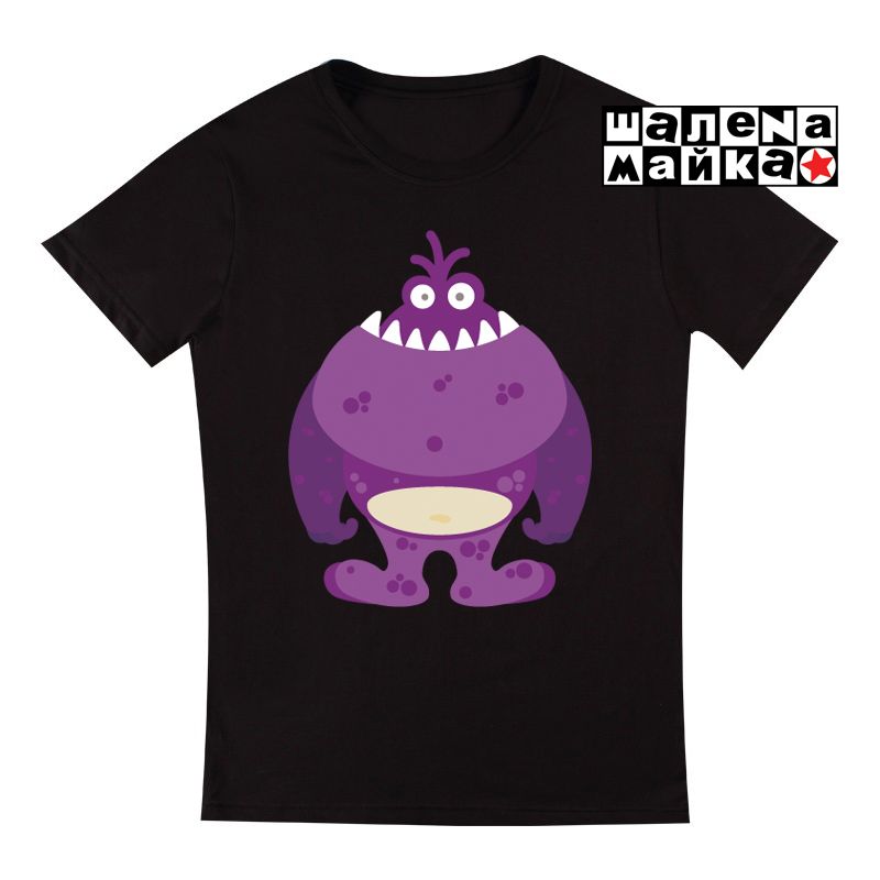 Футболка 36 Веселый фиолетовый монстр на черном