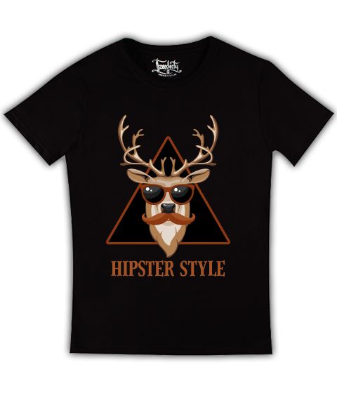 Футболка hipster style - олень с усами на черной
