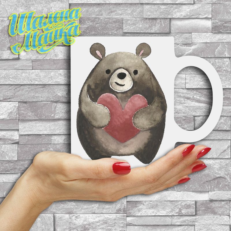 Кружка Love 166 Мишка с сердцем Акварель