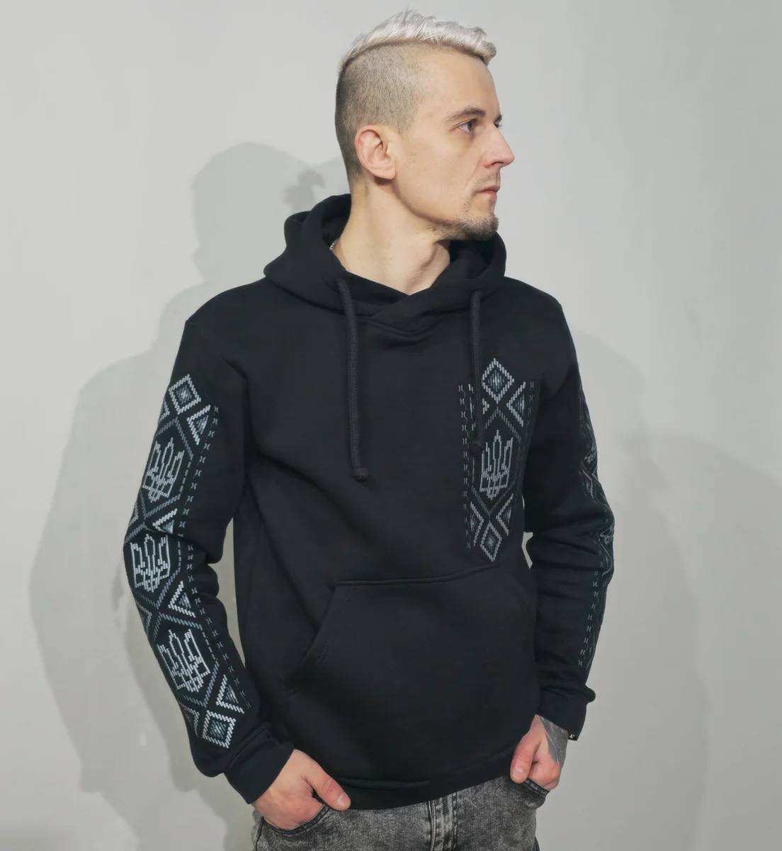 Купить худи с серой вышивкой в Днепре, доставка по Украине