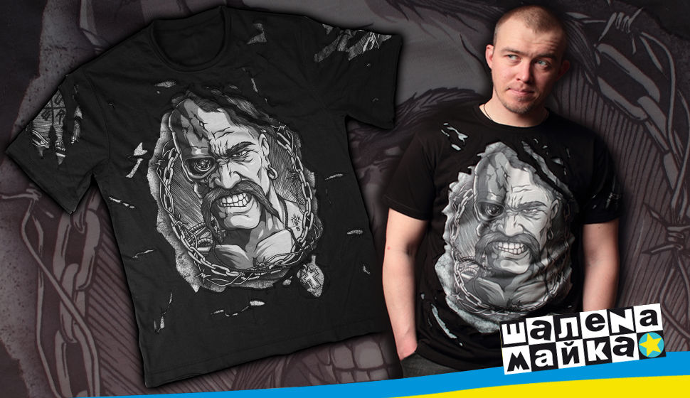 Купить футболку козак-киборг рваная черная в Днепре, доставка по Украине