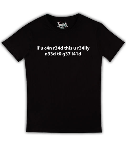 В нашем интернет-магазине Вы можете купить футболку Футболка if u c4n r34d th1s u r34lly n33d t0 g37 141d на черной по доступной цене. Отличительной чертой нашей продукции является качество и эксклюзивность.Футболка Футболка if u c4n r34d th1s u r34lly n33d t0 g37 141d на черной может быть доставлена в любой регион Украины. Мы работаем по всей стране и гарантируем успешную доставку в любую точку страны! Если же Вы решили выделиться из серой массы, то предлагаем Вам заказать оригинальную футболку с принтом, которую наши дизайнеры разработают персонально под Ваши вкусы и предпочтения!