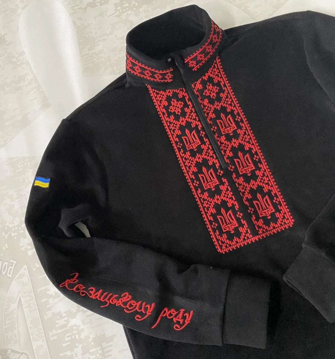 Купить черна фліска вишиванка червоний тризуб в Днепре, доставка по Украине