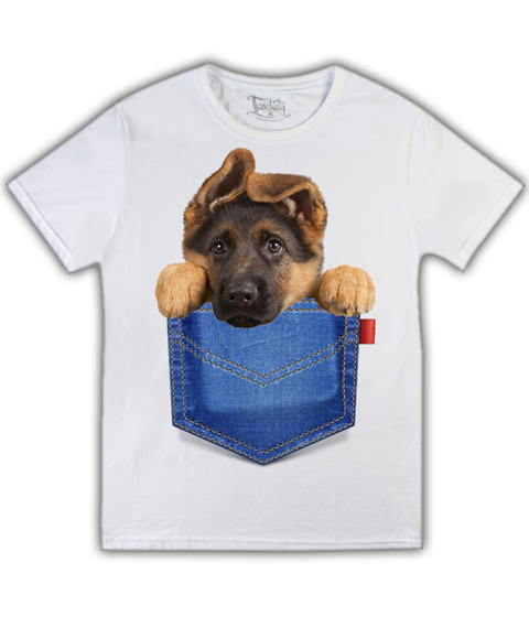 Купить футболку щенок в кармане на белой в Днепре, доставка по Украине