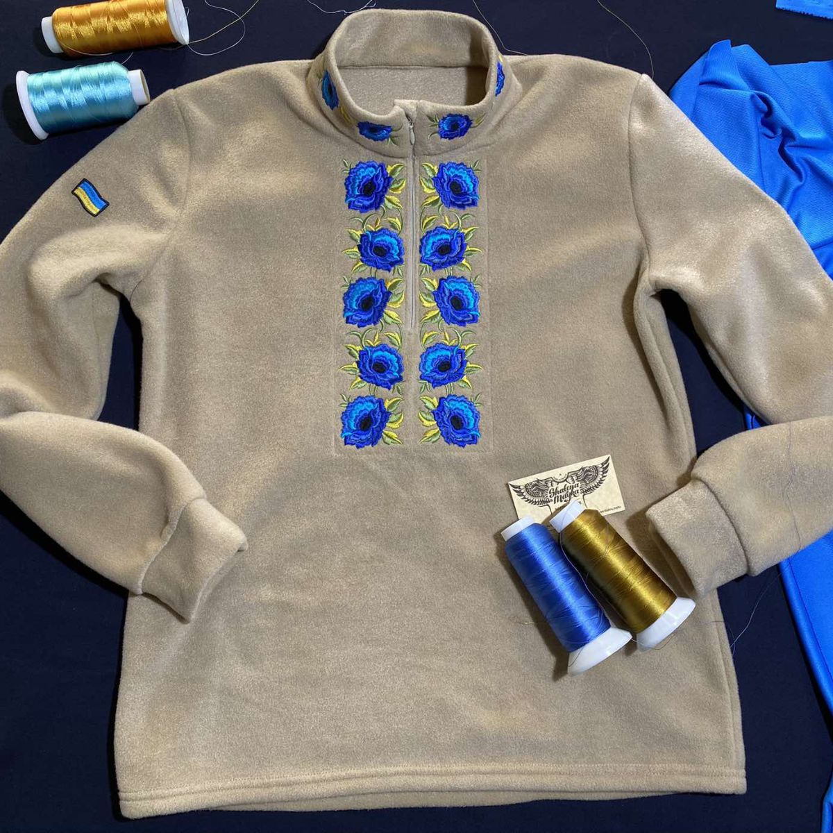 Купить фліска вишиванка блакитні квіти в Днепре, доставка по Украине
