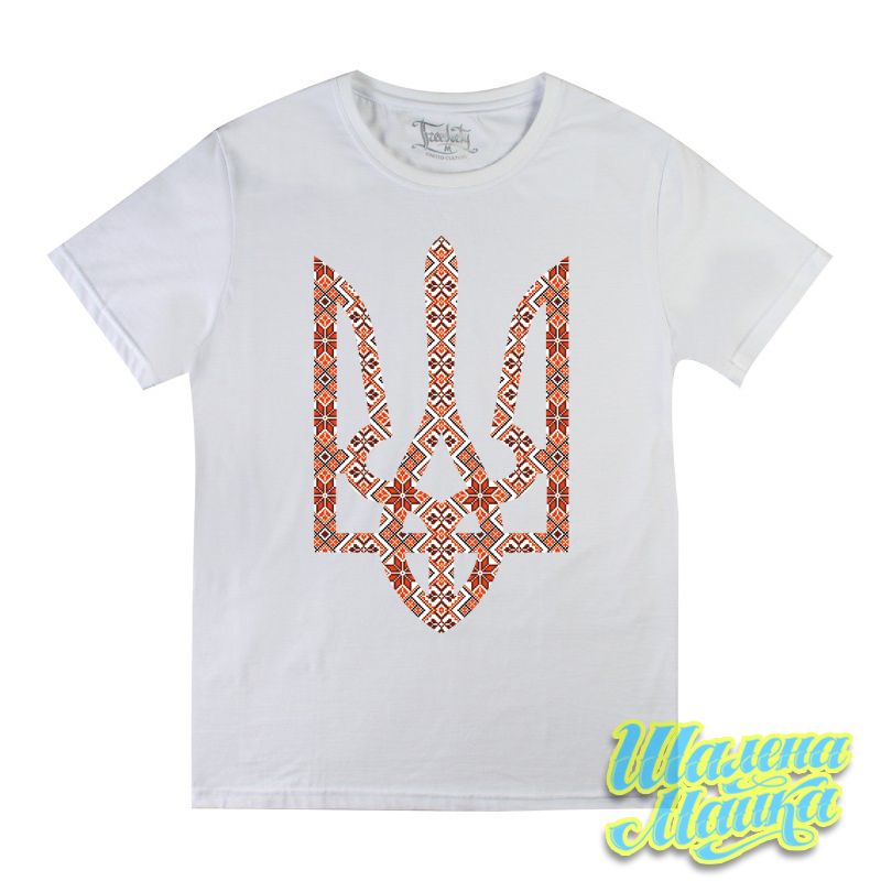 Купить футболку герб вышиванка 01 белая в Днепре, доставка по Украине