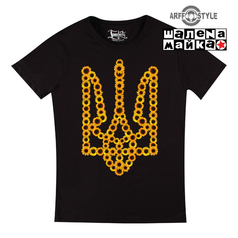 Купить футболку украинский герб из подсолнухов черная в Днепре, доставка по Украине